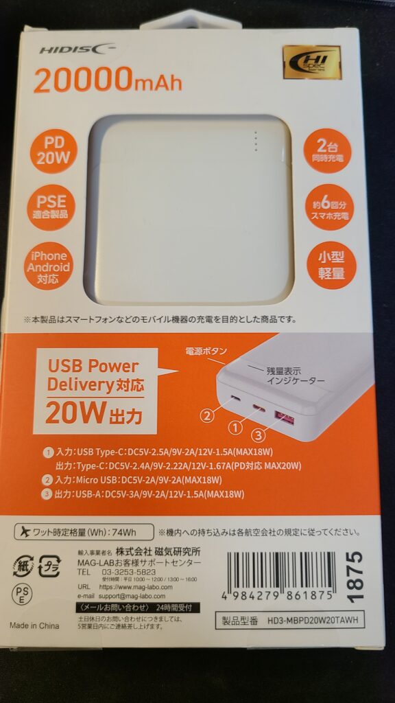 先日モバイルバッテリーを買いました。今使ってるバッテリーが古くなってきたので新しいモバイルバッテリーを購入しました。